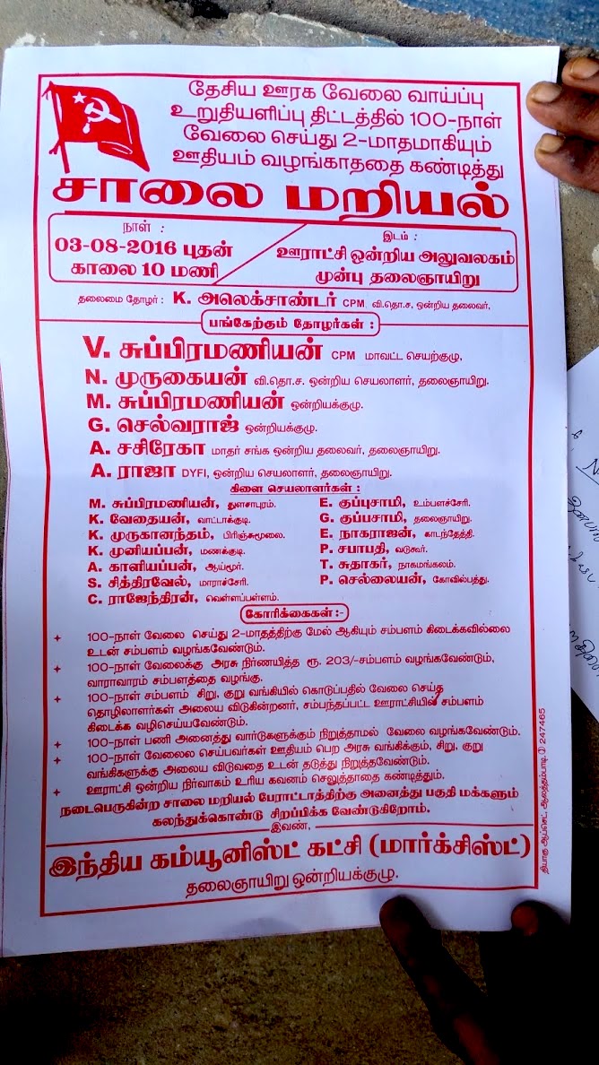 Here, farmers associations, led by the Communist Party had called a day of road blockage (Salai Mariyal) to get the administration’s attention to water shortage. The pots in front of the protesters is meant to symbolize water.
